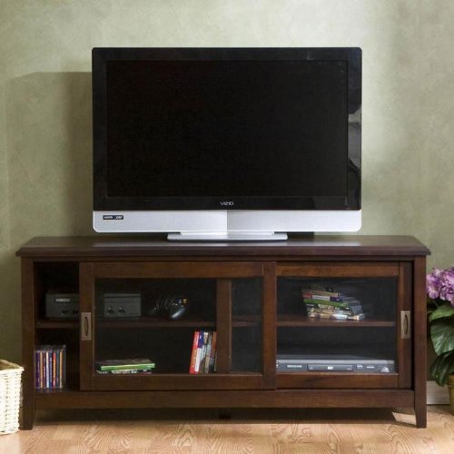 entertainment centers with fireplaces SEI Essex Espresso Media Stand with Sliding Glass-Paneled DoorsOverviews.